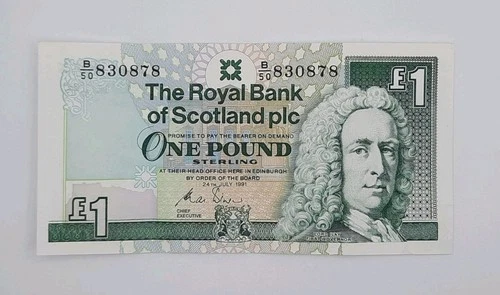 1991 The Royal Bank of Scotland UK - £1 Scottish Pound Banknote No. B50 830878