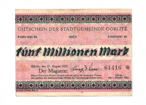 Coupon Der Stadtgemeinde Görlitz Five Million Mark 1923