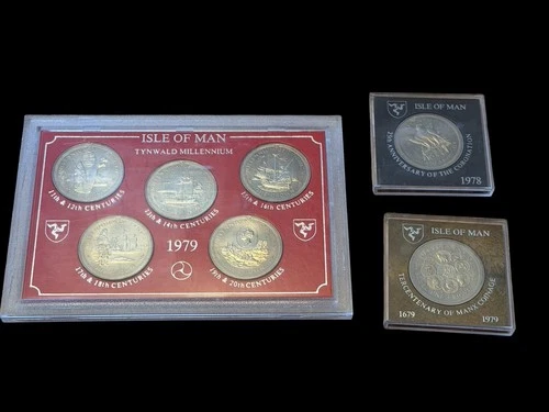 Isle of Man - Set of Five 1979 Crowns The Tynwald Millennium & 2 Other Coins