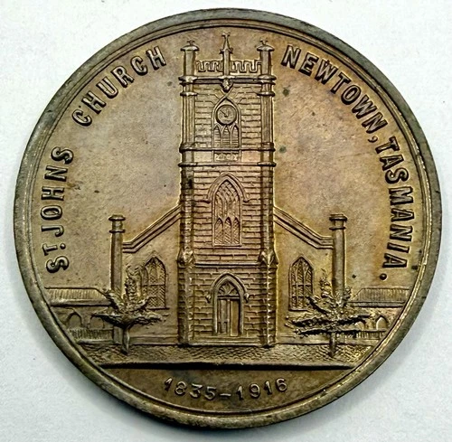 1916 Medal - St John's Church, Newtown, Tasmania, Australia, ( aUNC ) Token #TTT
