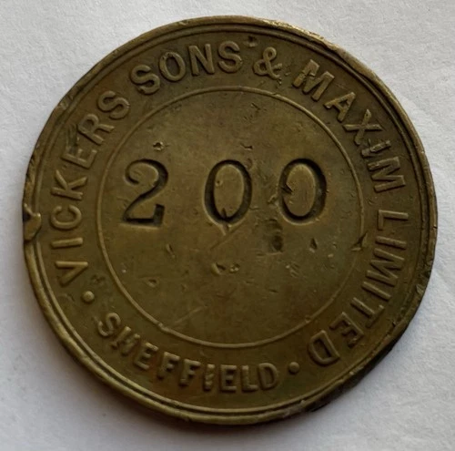 Victorian Vickers Sons & Maxim Ltd Armaments Company Brass Token No 200 c1899