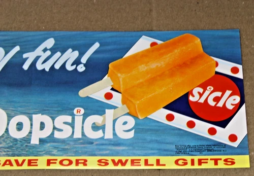 NEAR MINT ~dated 1967 POPSICLE Old Graphic 13x5 inch Dad Swimming with Kids Sign