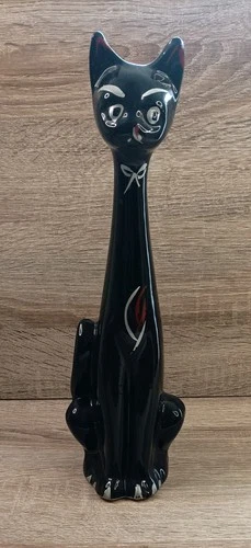 Vintage Ceramic Black Cat Scoop Head Vase Mid Century Modern 1960s Kitsch Retro