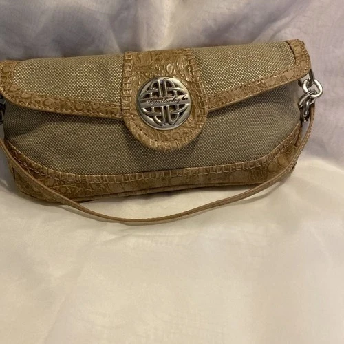 New Kate Landry Handbag Beige Leopard Print Cotton Blend Pre-Owned