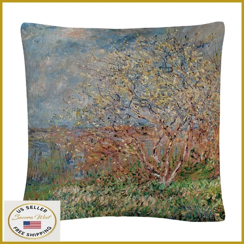 Trademark Fine Art Spring 1880 by Claude Monet, 16x16 Decorative Throw Pillow