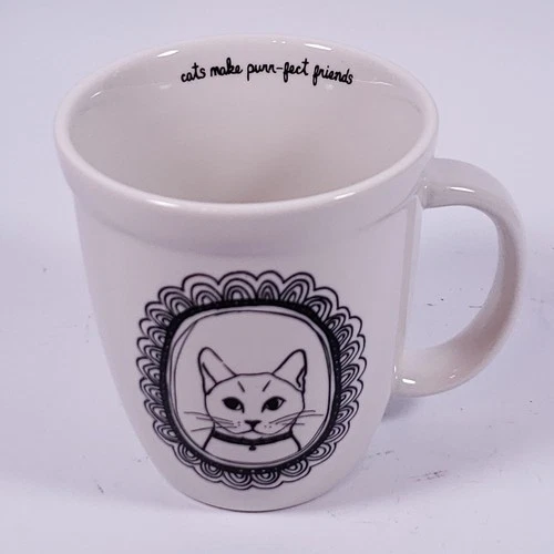NATURAL LIFE Cats Make Purr-Fect Friends Black White Cat Portrait CERAMIC MUG