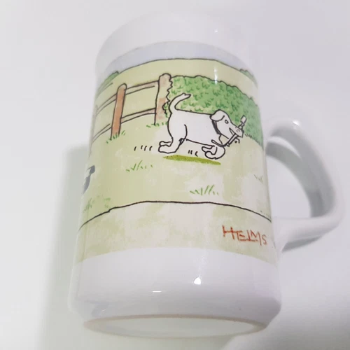 Cartoon dog mischief cycling white ceramic coffee tea mug vintage Helm