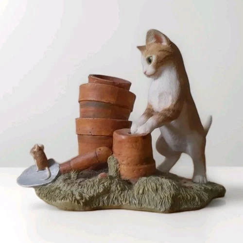 Sherratt & Simpson Ginger Kitten Cat with Flower Pots & Mouse Figurine Ornament