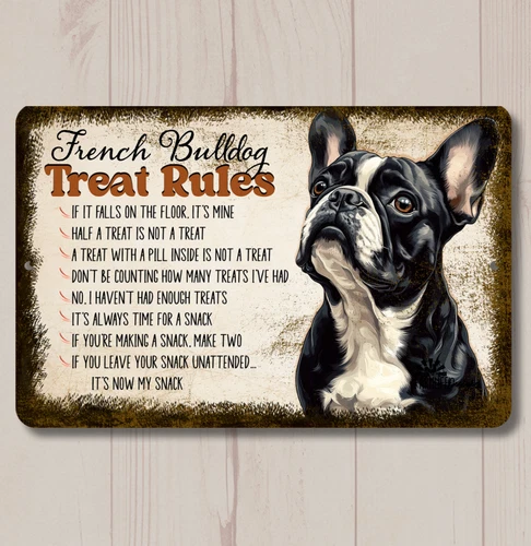 French Bulldog Treat Rules Sign bull dog snack metal tin funny wall art handmade
