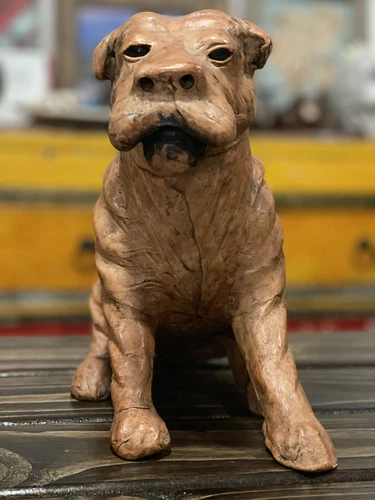 Vintage Handmade Tan Leather French Bulldog Sculpture Figurine