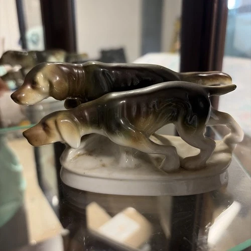 VTG Ceramic Hunting Dogs Figurine Japan Two Pointers Hunting 5-1/2" Shelf Sitter