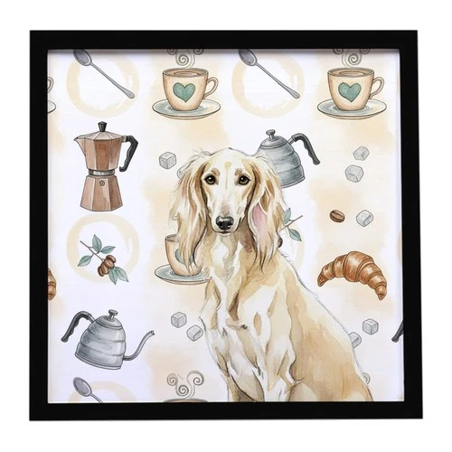 Caroline's Treasures Cream Saluki Coffee Bar Framed Metal Print WDK7595MFP88
