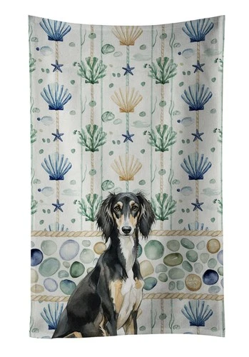 Caroline's Treasures Black and Tan Saluki Coastal Sea Glass Kitchen Towel
