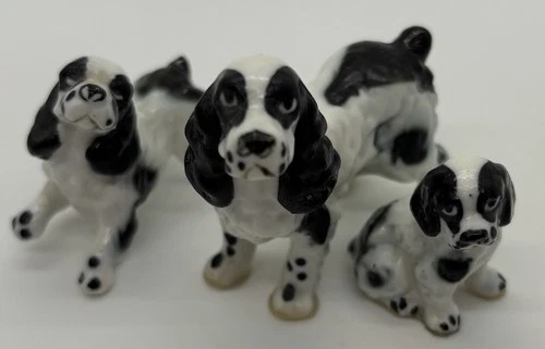 VTG Mini Cocker Spaniel Porcelain Figurines Mom & Puppies, Dog Figurines