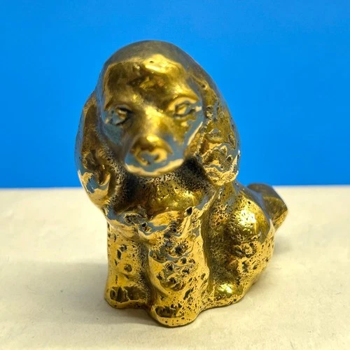 VTG Miniature Solid Brass Cocker Spaniel Puppy Dog Figurine 1.75”H Paperweight