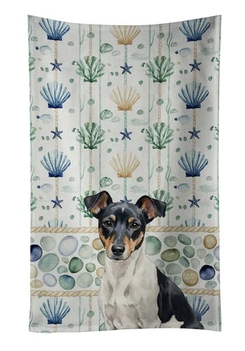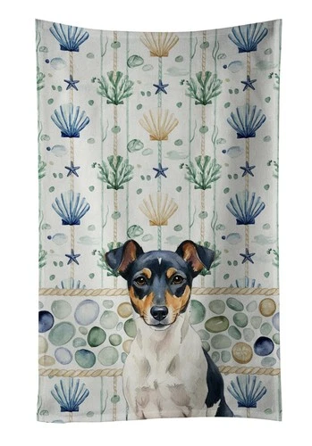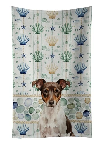 Caroline's Treasures Tricolor Rat Terrier Coastal Sea Glass Kitchen Towel