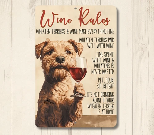 Wheaten Terrier Wine Rules Sign bar dog handmade metal tin funny decor wall art