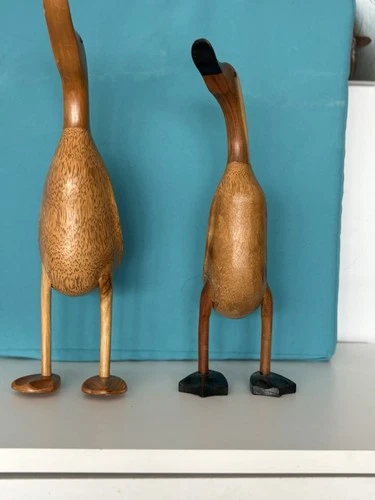 Set of Two Small Wooden Yellow /Mandarin Duck Figurines Wedding Gift
