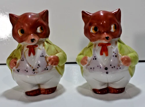 Fox Figurines Salt And Pepper Shakers Ceramic Porcelain Handpainted USA