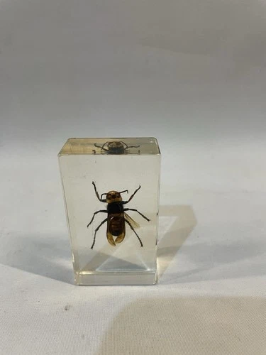 Encased Insect Specimen in Resin Block – Likely Hornet (Approx. 4–7 cm)