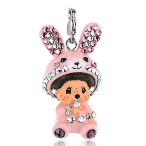 Swarovski Monchhichi Rabbit Necklace Chain Pink Cherry Blossom Crystal Jewelry