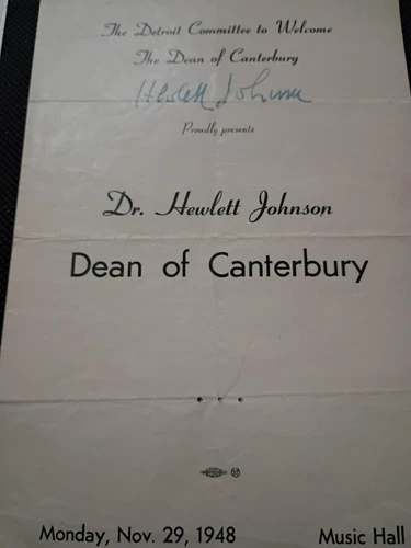 Rare! 1948 Detroit program welcoming Dr. Hewlett Johnson dsigned ean of Canterbu