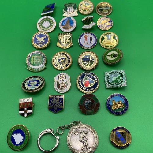 Job Lot of 27 Vintage and recent Pin and Enamel Bowling Badges (B)