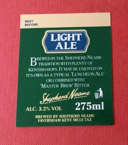 Shepherd Neame - Light Ale - 275 ml - Back Beer Bottle Label