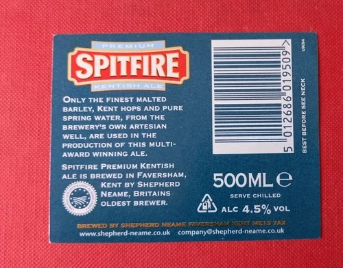 Shepherd Neame - Spitfire - Kentish Ale - 500 ml - Back Beer Bottle Label