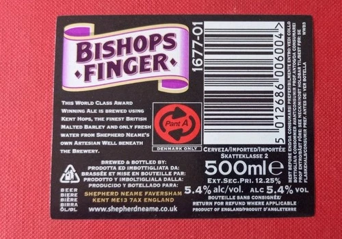 Shepherd Neame - Bishops Finger - Imported - 500 ml - Back Beer Bottle Label