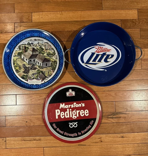 Lot of 3 VTG metal serving trays - Pabst, Miller Lite, Marston's