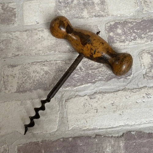Vintage French Wooden Corkscrew Tire Bouchon Wine Opener Barware 1940s