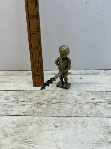 Antique Corkscrew Brass Figural Boy Marked Bruxelles Metal Free Postage