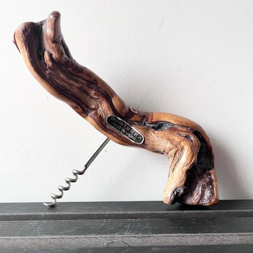 Natural Grapevine Wood Corkscrew Bottle Opener Cheverny Chamonix 19.5 cm (VGOOD)