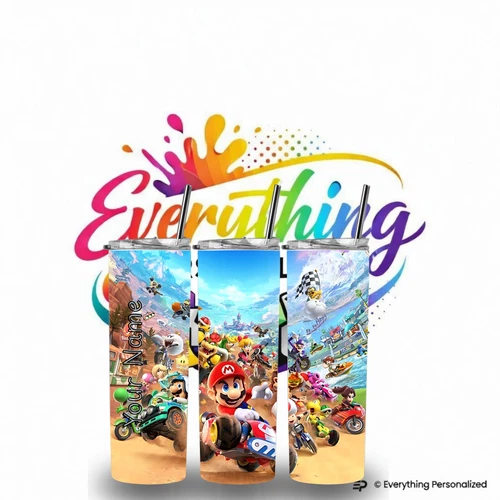 Super Mario 20oz Personalised Tumbler with Metal Straw – Custom Name Drink Cup