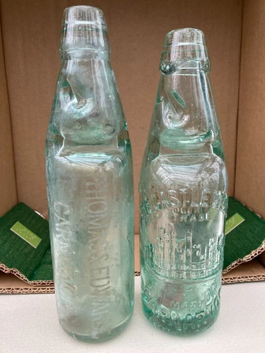 2 X Antique Codd Bottles Thomas Edwards Carnarvon Castle North Wales
