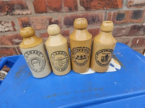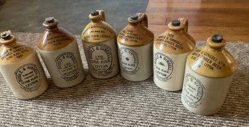 6no Biddle & Gingell Ltd Leyton. Stoneware Flagon. Ginger beer bottles