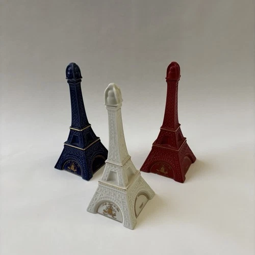 Eiffel Tower Empty Mini Ceramic Bottles Lot Of 3, Red White Blue 2.5”X 6”