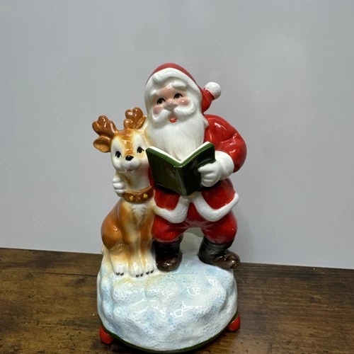 VTG Rare Berman & Anderson Santa Reindeer Music Box 1979 Japan Winter Wonderland