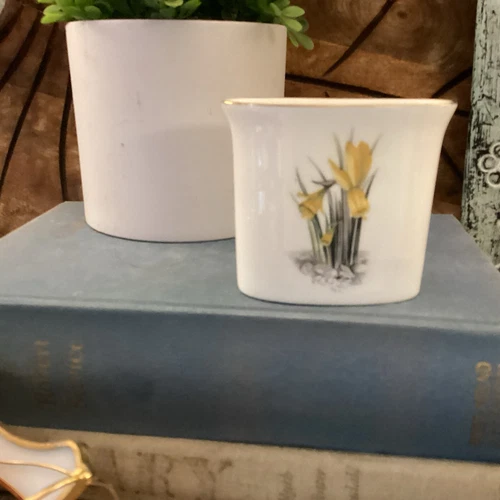DAFFODIL BONE CHINA BUSINESS CARD Toothpick HOLDER-ROYAL WORCESTER, ENGLAND Vtg