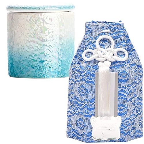 Mini Bone Urn Yawaragi Luster Blue 2.0 inch with Pouch Japan