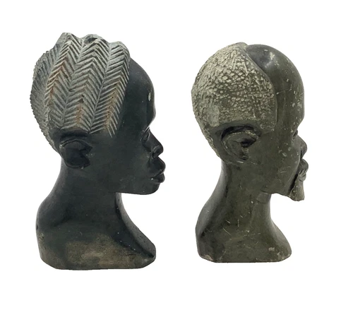 Vintage African Head Sculptures Hand Carved Stone Figures x2