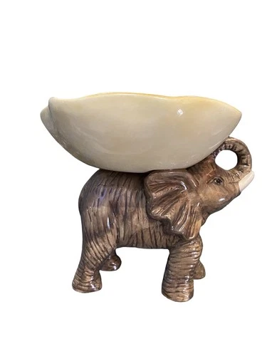 Vigor elephant, bowl on back, candy dish, Africa decor, ceramic, 7 x 5 inches