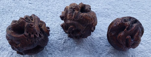 Vintage 3 x 1.5 to 2" Wooden Dragon in a Ball Carving Art Figure