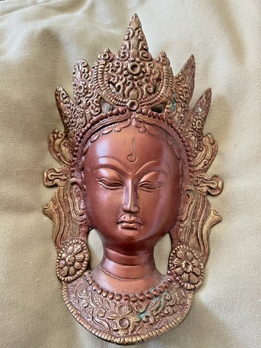 Hindu/Buddhist Goddess Brass Head Wall Plaque/Sculpture, Indian?