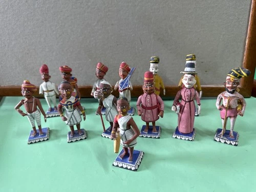 Indian Traditional Handmade Kondapalli Band Figures x 3 APPROX 3 1/2” Tall (b)