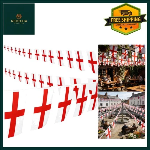 England Flag Bunting, 30 St George Flags, Durable 12m Polyester Decor