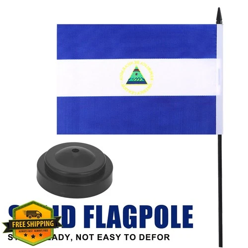 JBSJBS 2 Nicaragua Desk Flags 12" Solid Pole Set w/ Black Stand