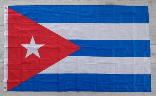 Flag Cuba on eyelets, polyester, size 147 x 90 cm/ 57.9 x 35.4 in, new, Germany