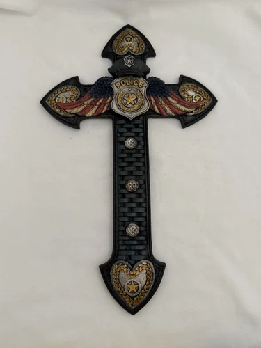 Police Officer Cross LE Badge Hat Wings New 14x8 Wall Hanging USA Rainbow INC